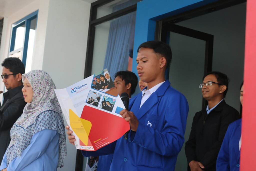 Puncak acara hadir dari sambutan Direktur Politeknik Bisnis LPP Quantum, Eddy Sabarudin, M.Si. Beliau tidak hanya memberi selamat, tapi juga menyampaikan pesan kuat tentang pentingnya peran organisasi. “Saya dulu mahasiswa biasa, tapi karena aktif di organisasi, saya belajar leadership, manajemen waktu, hingga public speaking. Itu semua membentuk saya sampai bisa duduk di posisi ini,” ujarnya penuh semangat.